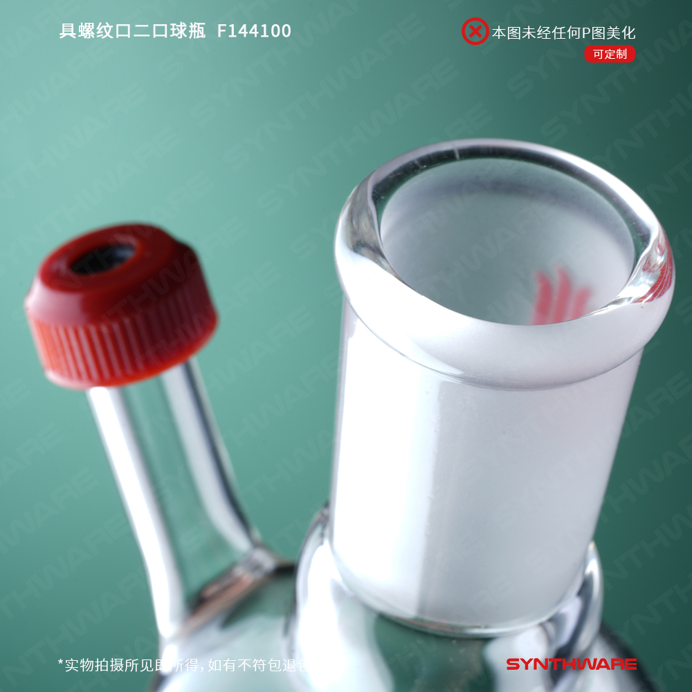 具螺纹口二口球瓶,磨口:14/20,100ml F141100