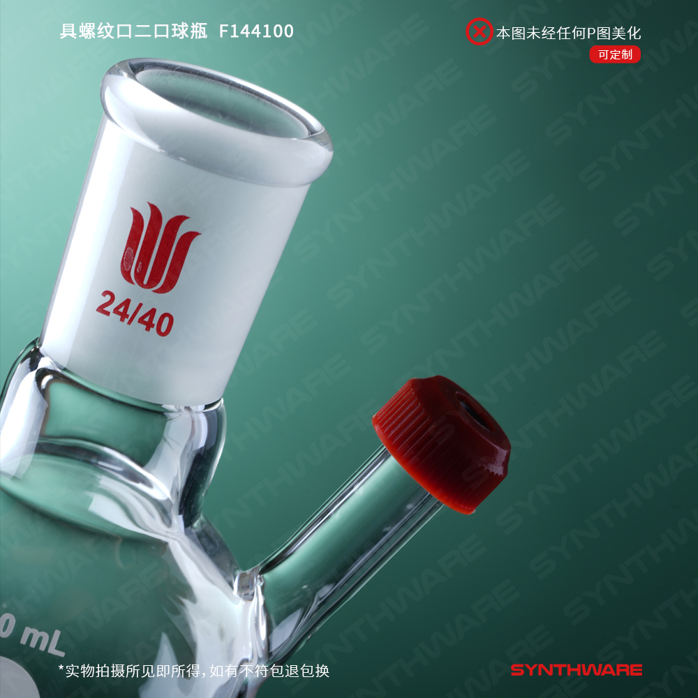 具螺纹口二口球瓶,磨口:24/40,100ml F144100