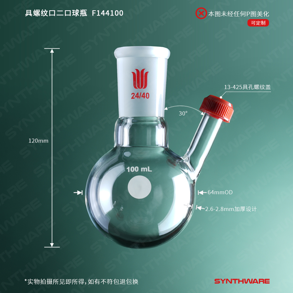 具螺纹口二口球瓶,磨口:19/22,100ml F149100