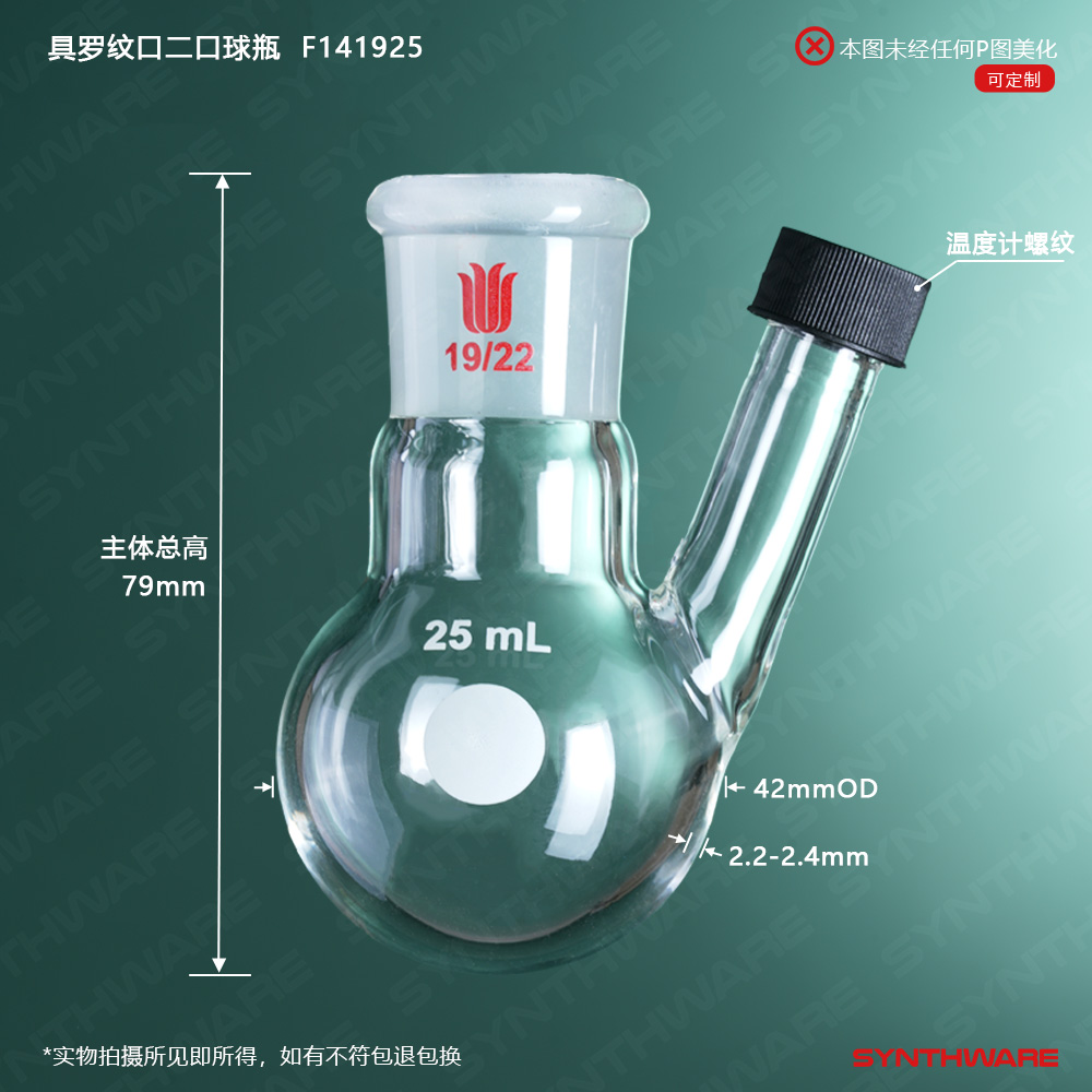 具螺纹口二口球瓶,磨口:19/22,25ml F141925