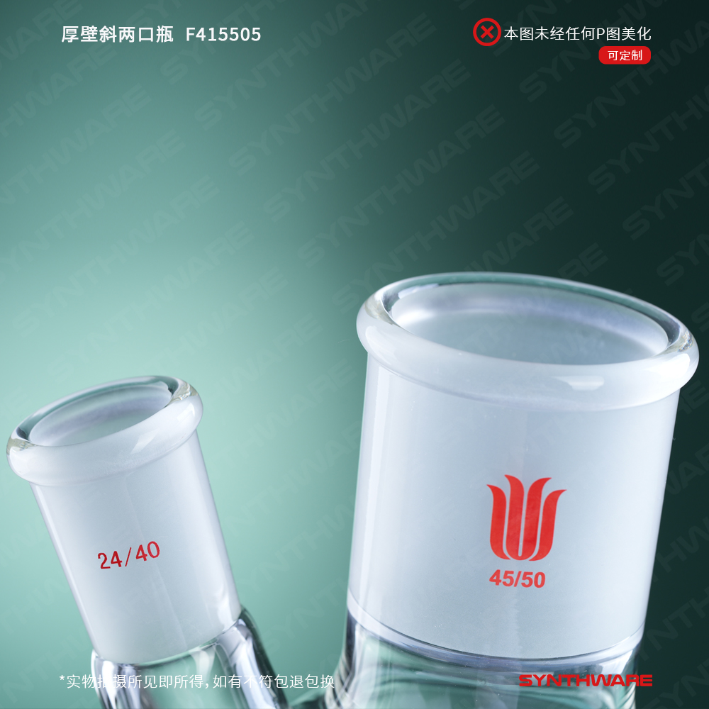 小角度斜两口瓶,厚壁高强度,中间磨口:24/40,侧磨口:24/40,50ml F414450X
