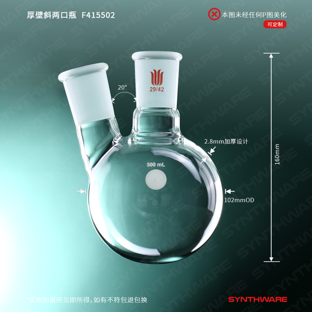 小角度斜两口瓶,厚壁高强度,中间磨口:45/50,侧磨口:29/42,500ml F415506X