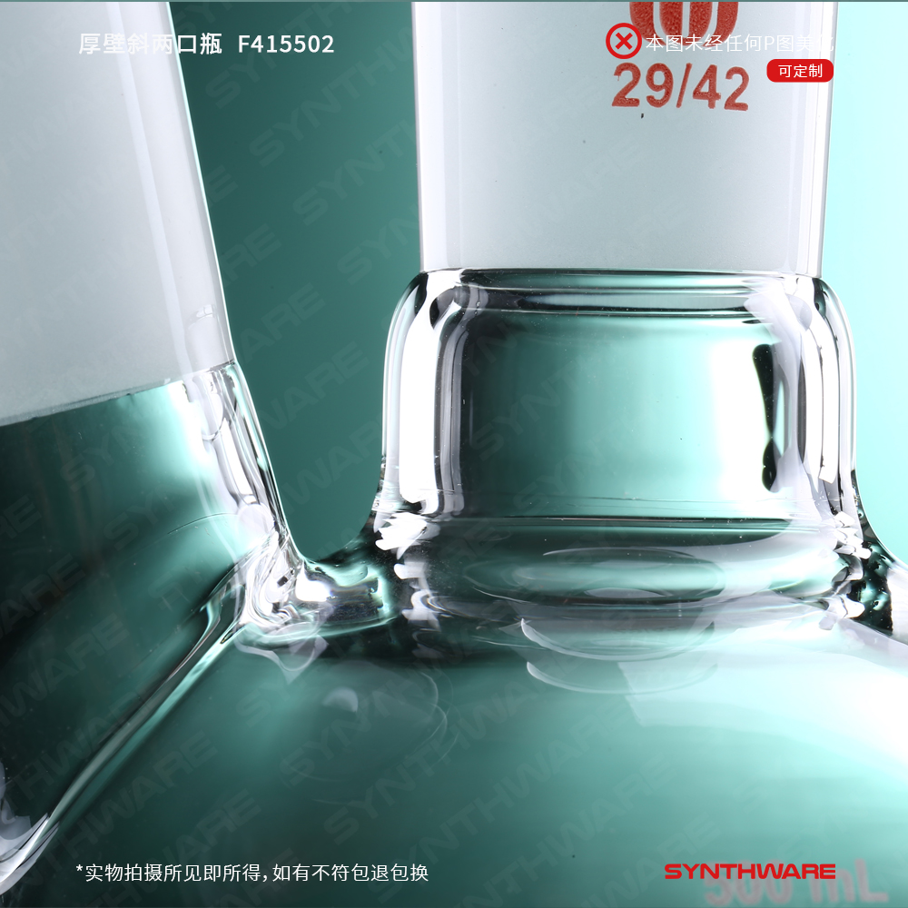 小角度斜两口瓶,厚壁高强度,中间磨口:29/42,侧磨口:24/40,500ml F415501X