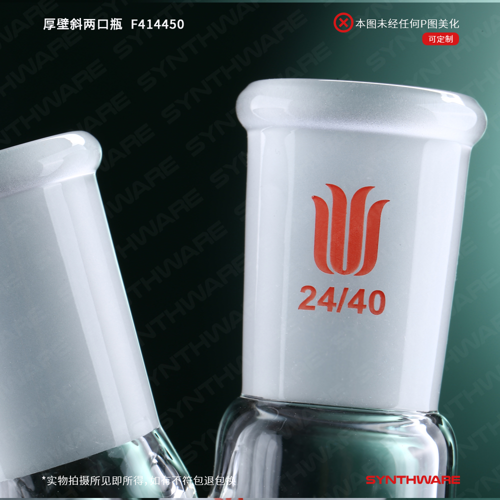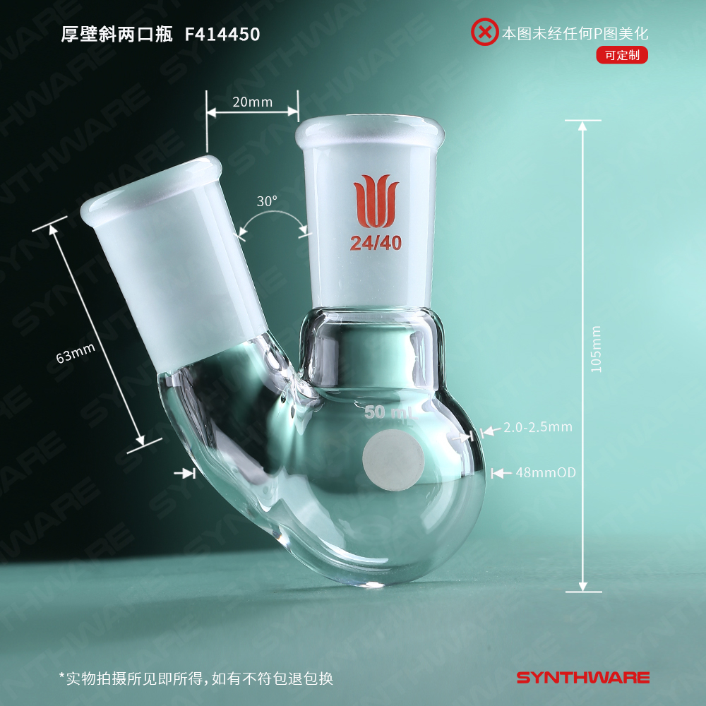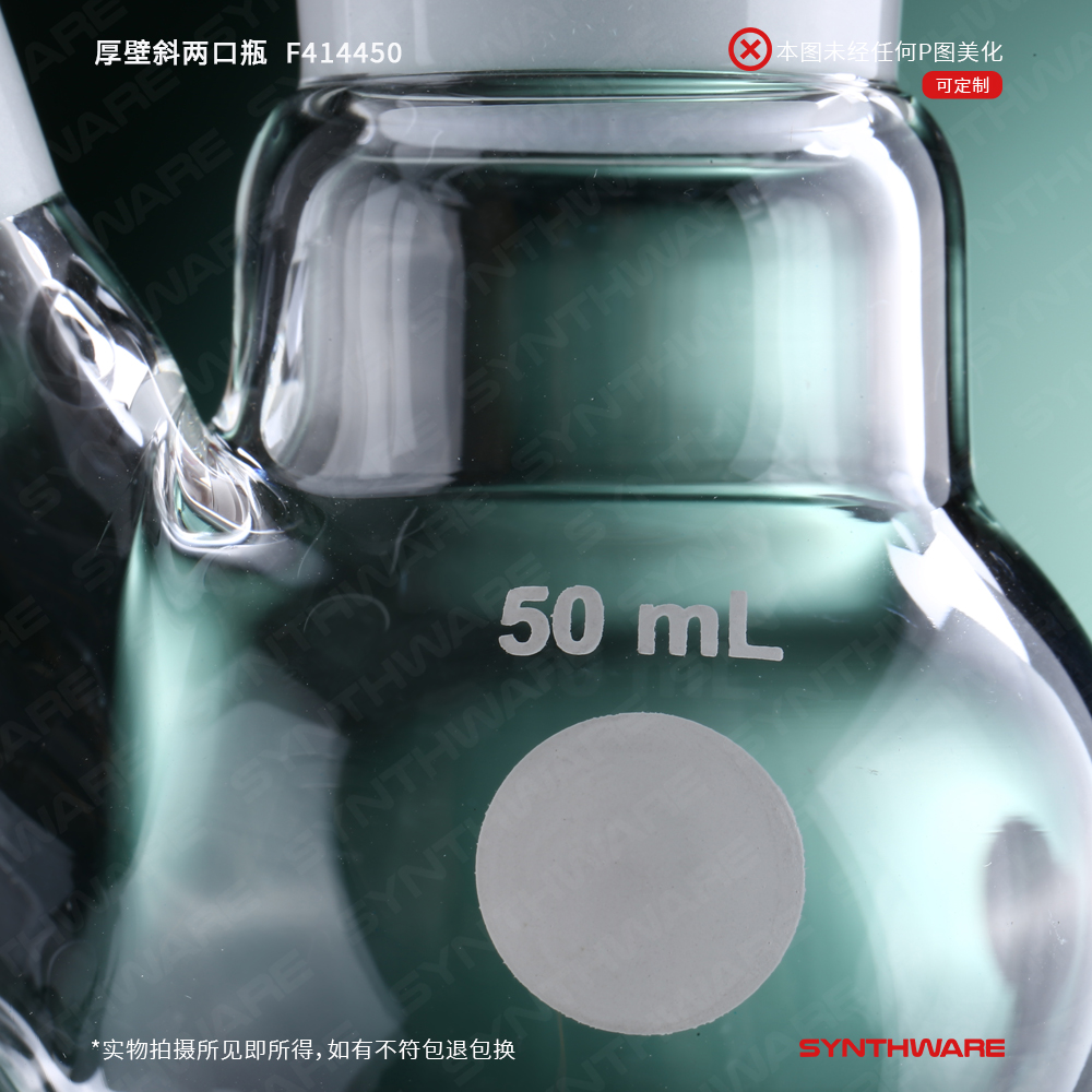 小角度斜两口瓶,厚壁高强度,中间磨口:24/40,侧磨口:24/40,50ml F414450X