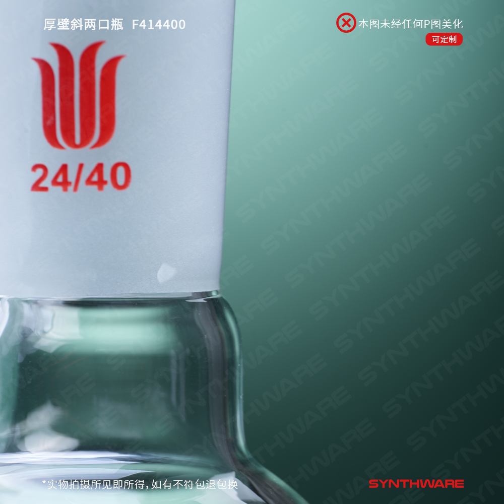 # 侧口可根据需求连接其他功能性接头或装置如:通气接头,冷凝器,加料漏斗等。不建议连接温度计或温度计套管类产品,如果需要连接温度计类产品请选购F41X小角度两口瓶系列。