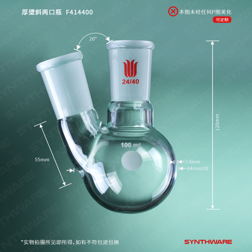 小角度斜两口瓶,厚壁高强度,中间磨口:24/40,侧磨口:24/40,100ml F414400X