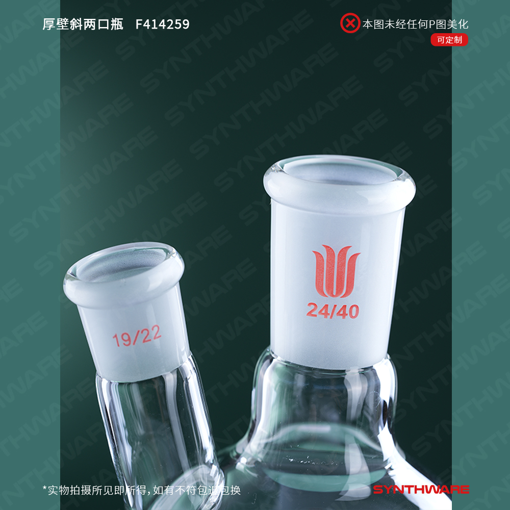 小角度斜两口瓶,厚壁高强度,中间磨口:19/22,侧磨口:19/22,100ml F419900X