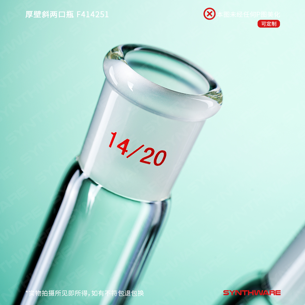 小角度斜两口瓶,厚壁高强度,中间磨口:24/40,侧磨口:14/20,50ml F414150X