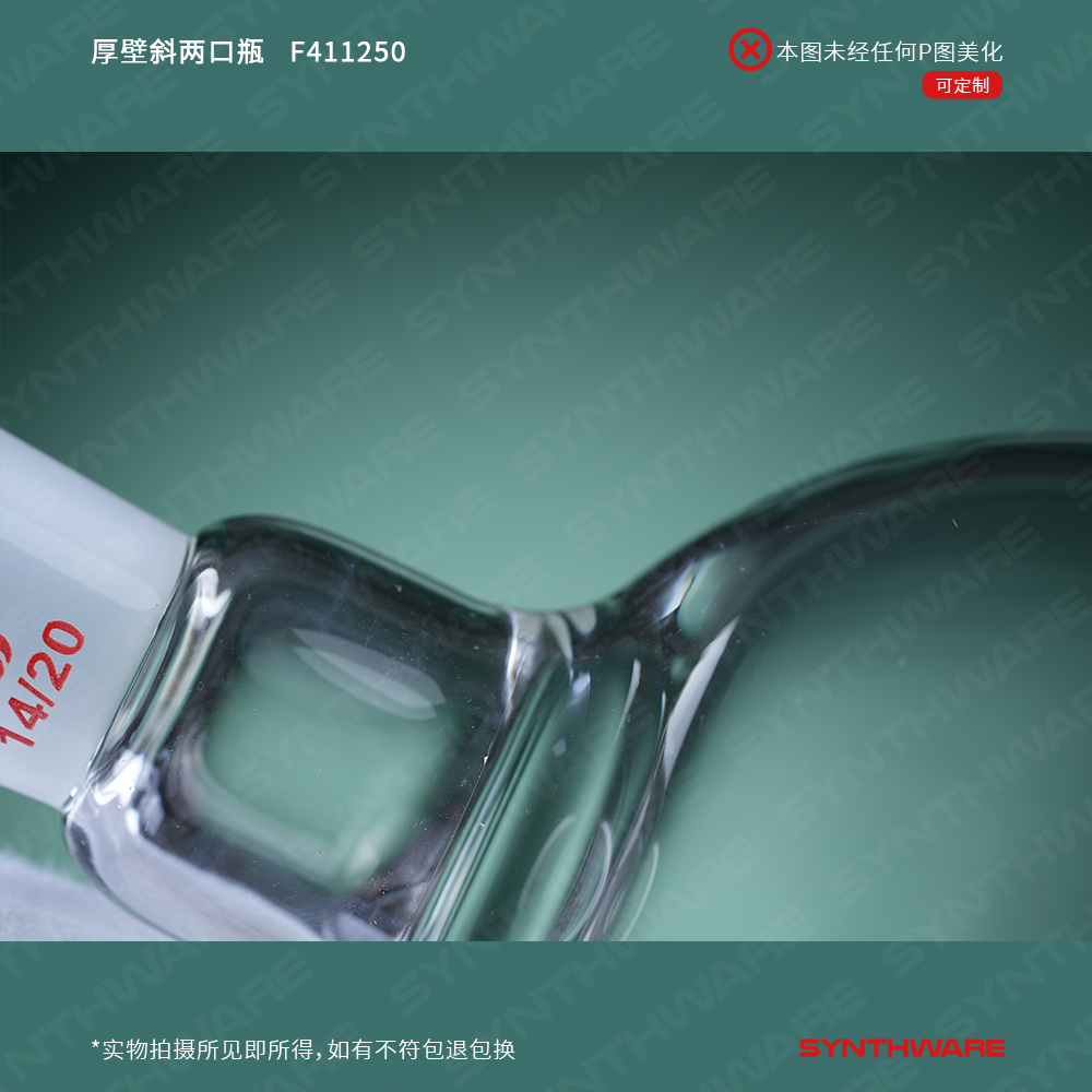 小角度斜两口瓶,厚壁高强度,中间磨口:14/20,侧磨口:14/20,100ml F411100X