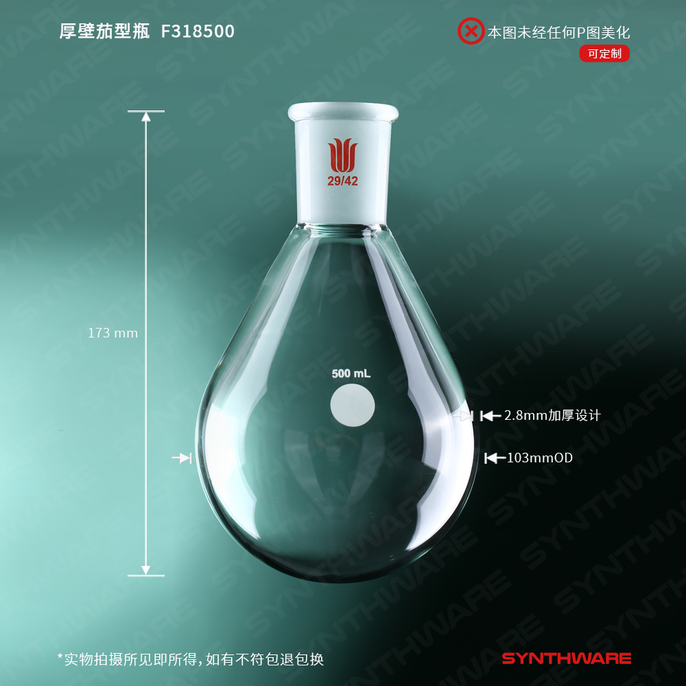# 厚壁高强度设计,使用3.3高硼硅玻璃管,经特殊工艺(数控机床等)制得,非大炉吹制,以达到瓶身厚实且均匀,结实耐用。