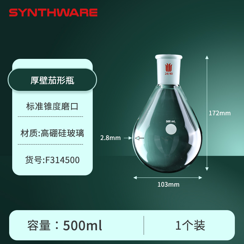 厚壁茄型瓶,高强度,磨口:24/40,500ml F314500