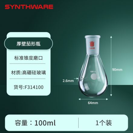 厚壁茄型瓶,高强度,磨口:24/40,100ml F314100
