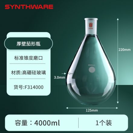 厚壁茄型瓶,高强度,磨口:24/40,1000ml F314000