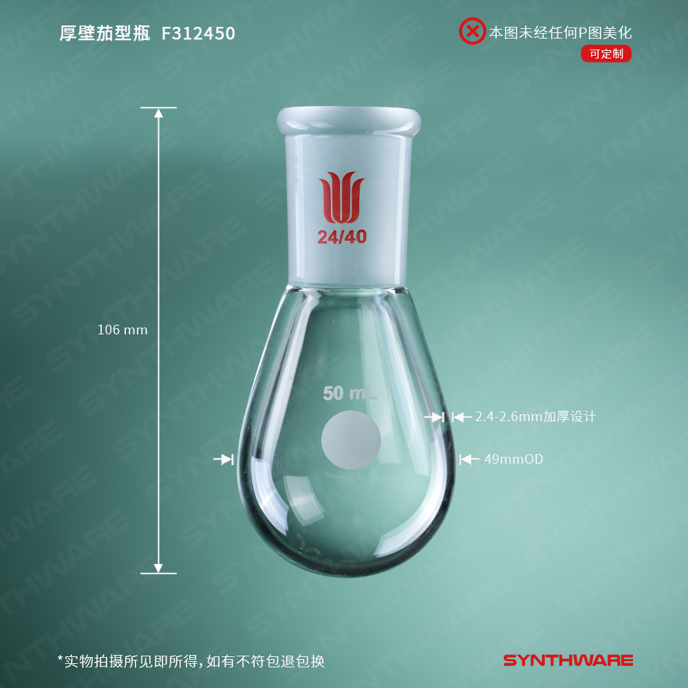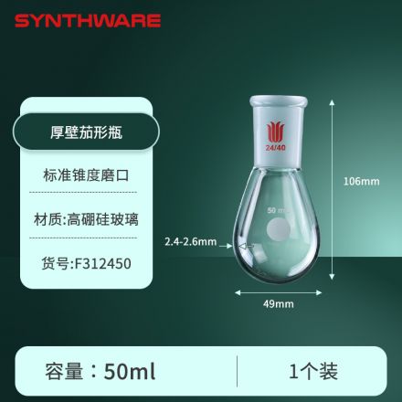 厚壁茄型瓶,高强度,磨口:24/40,50ml F312450