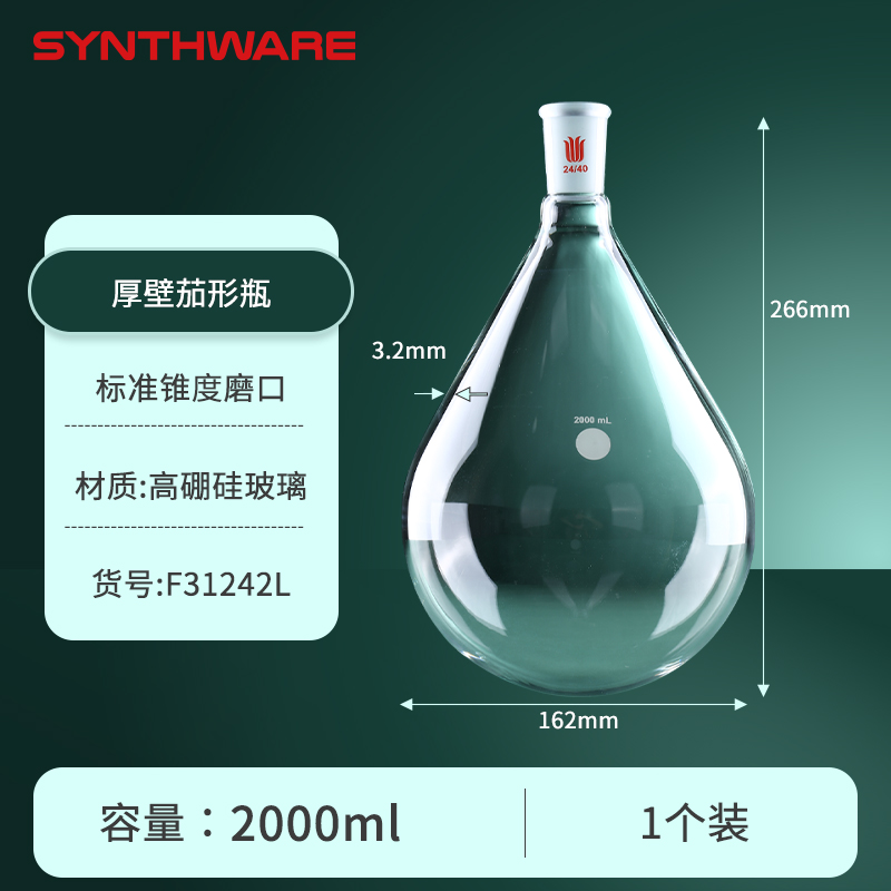 厚壁茄型瓶,高强度,磨口:24/40,2000ml F31242L