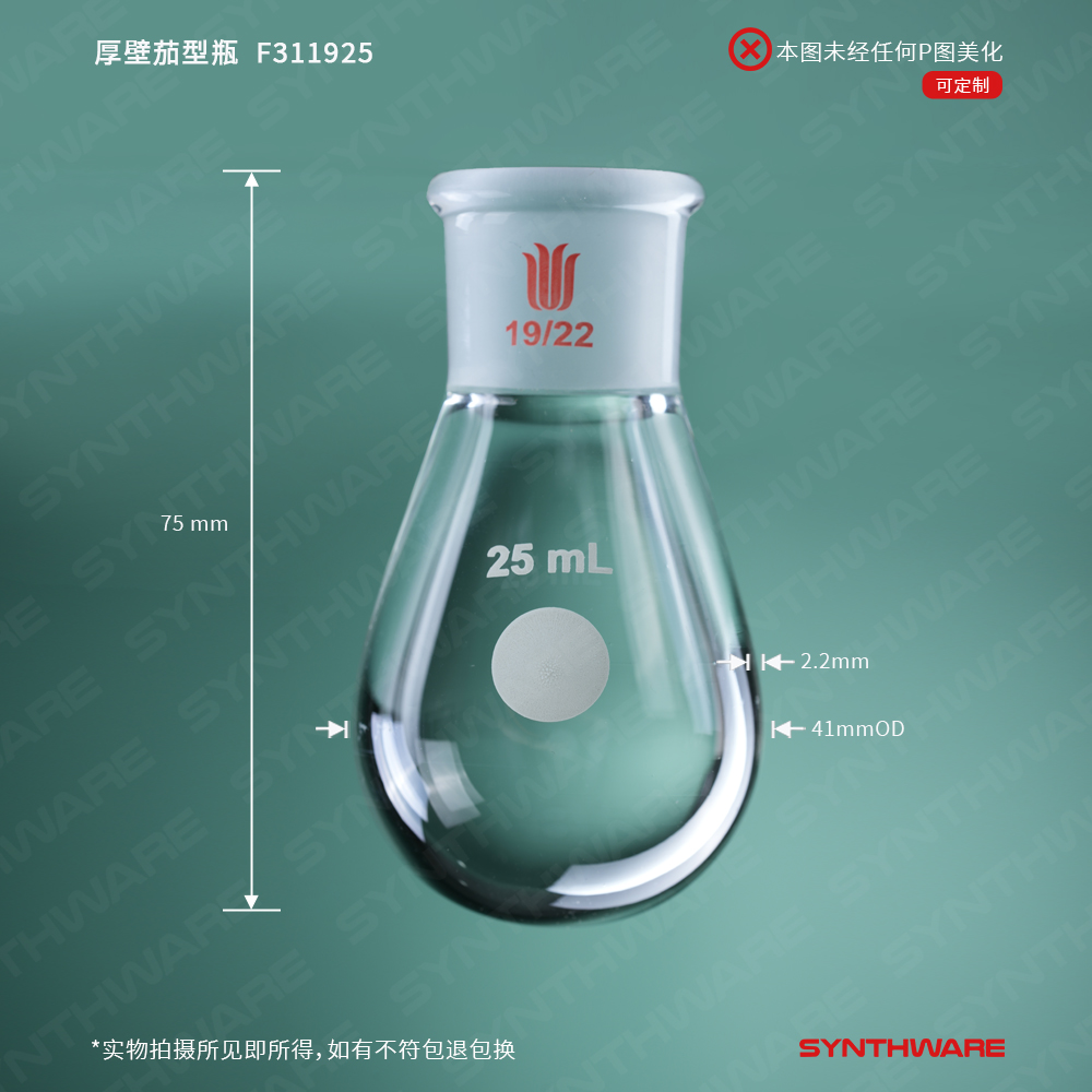厚壁茄型瓶,高强度,磨口:19/22,25ml F311925