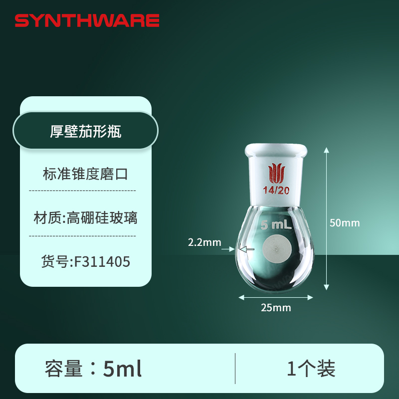厚壁茄型瓶,高强度,磨口:14/20,5ml F311405