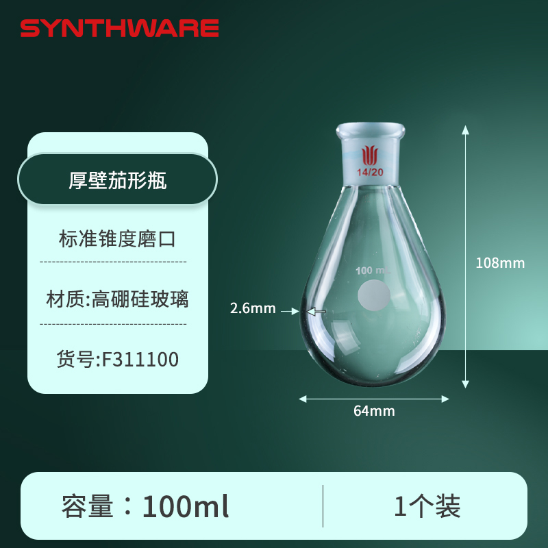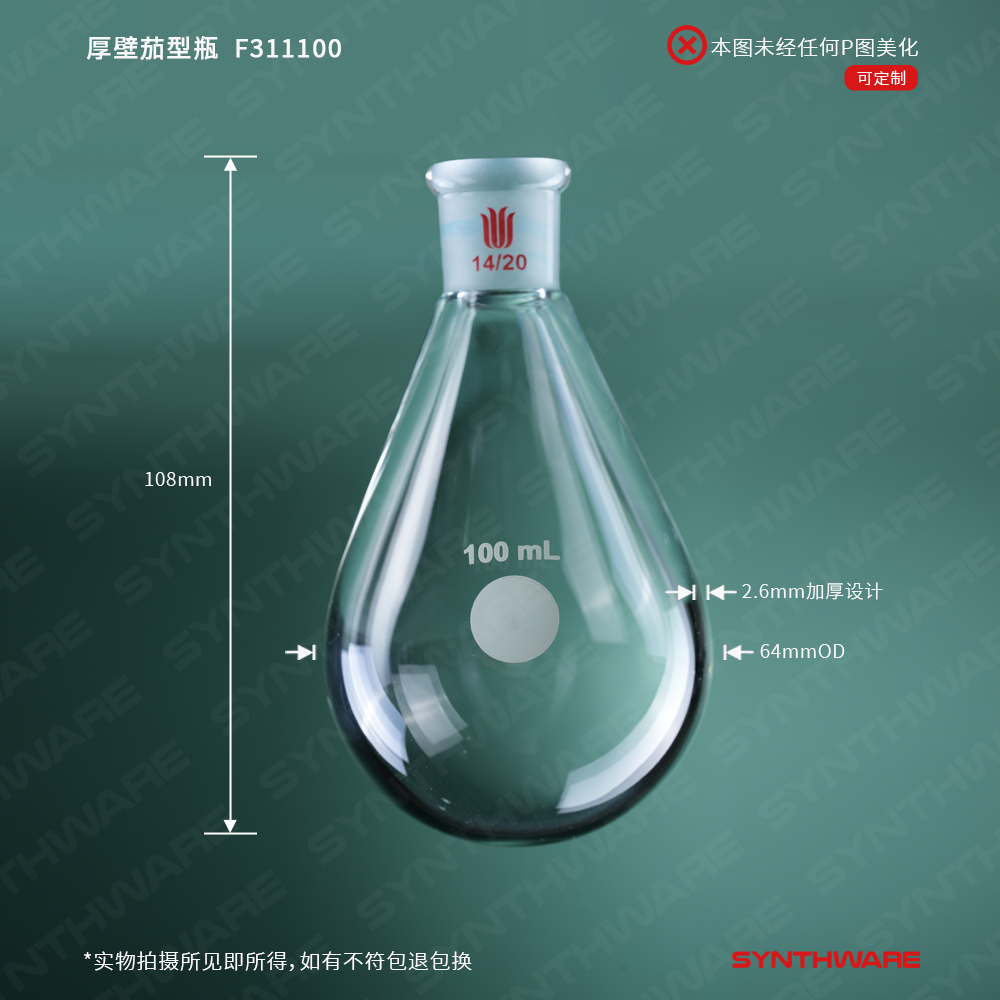 厚壁茄型瓶,高强度,磨口:14/20,100ml F311100