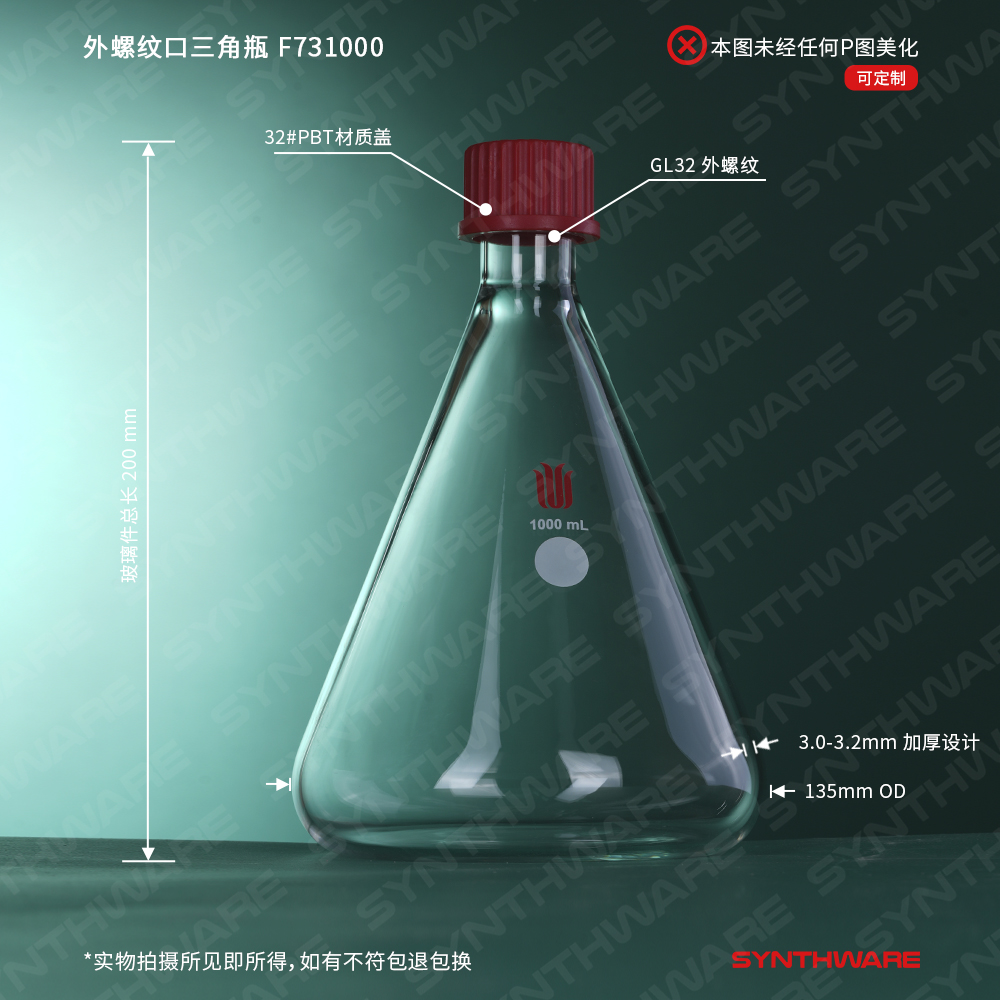 外螺纹口三角瓶,1000ml,螺纹口GL32 F731000