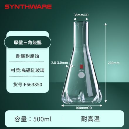 三角瓶,厚壁高强度,磨口:24/40,500ml F664500