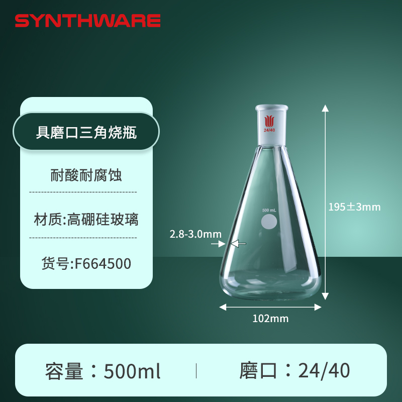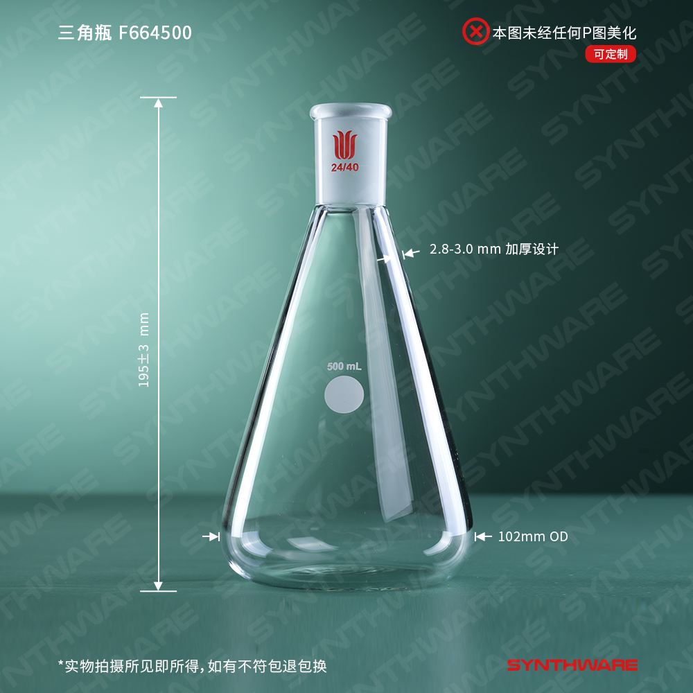 三角瓶,厚壁高强度,磨口:24/40,500ml F664500