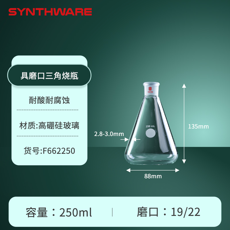 三角瓶,厚壁高强度,磨口:19/22,250ml F662250