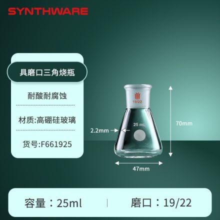 三角瓶,厚壁高强度,磨口:19/22,25ml F661925