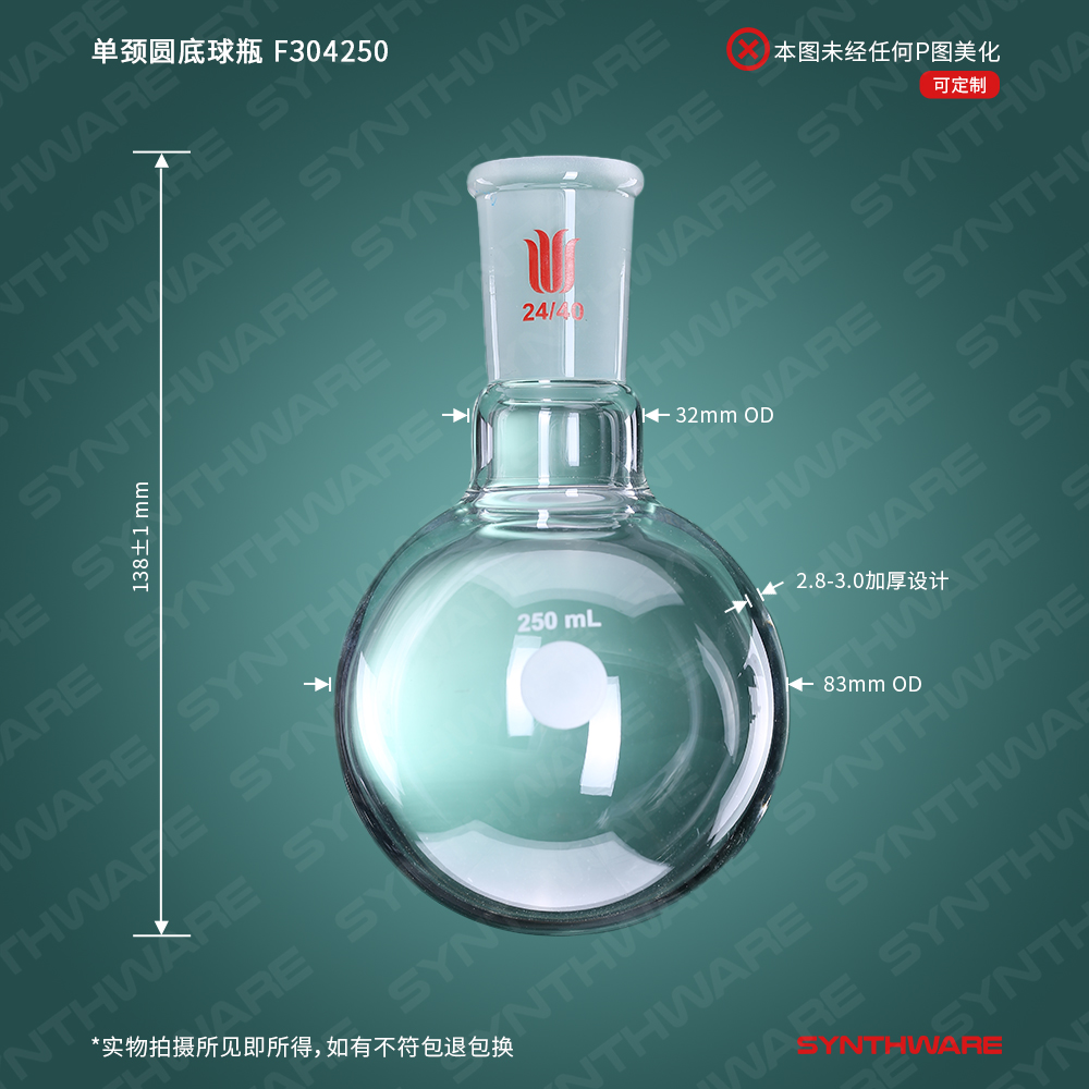 单颈圆底球瓶,厚壁高强度,磨口:24/40,250ml F304250