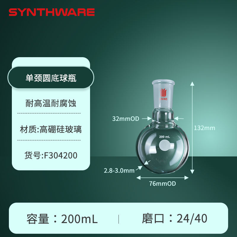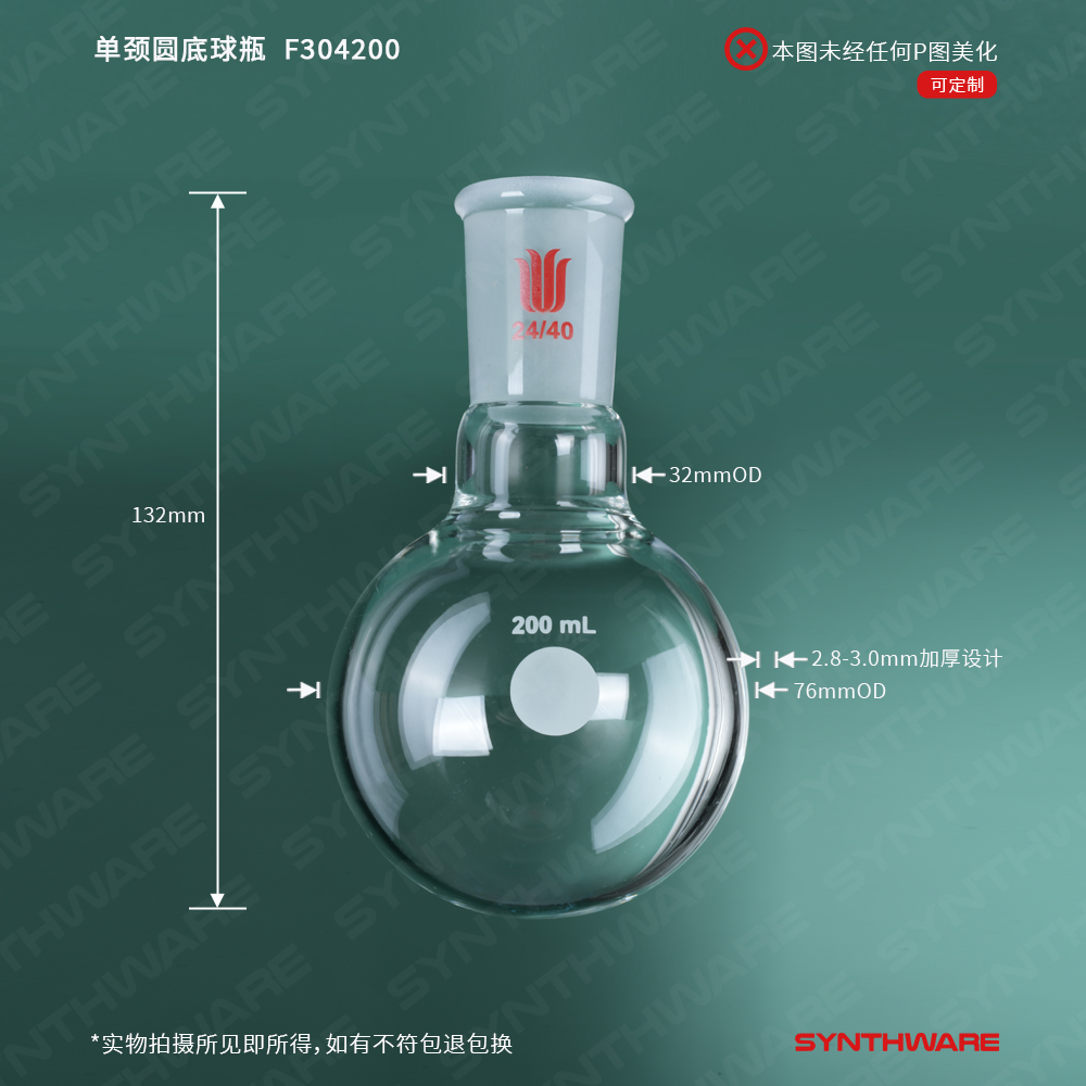 单颈圆底球瓶,厚壁高强度,磨口:24/40,200ml F304200