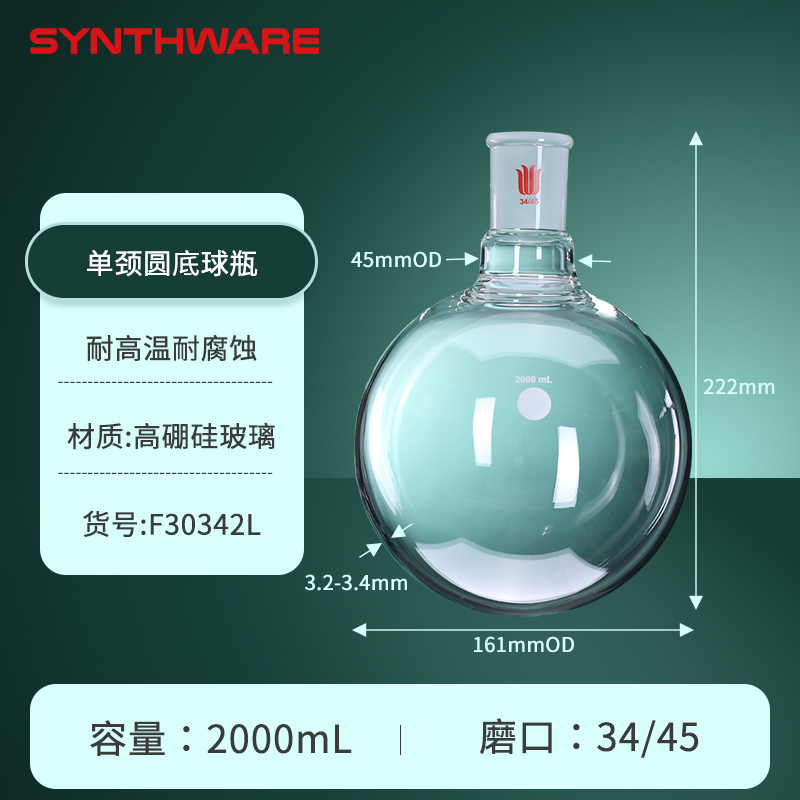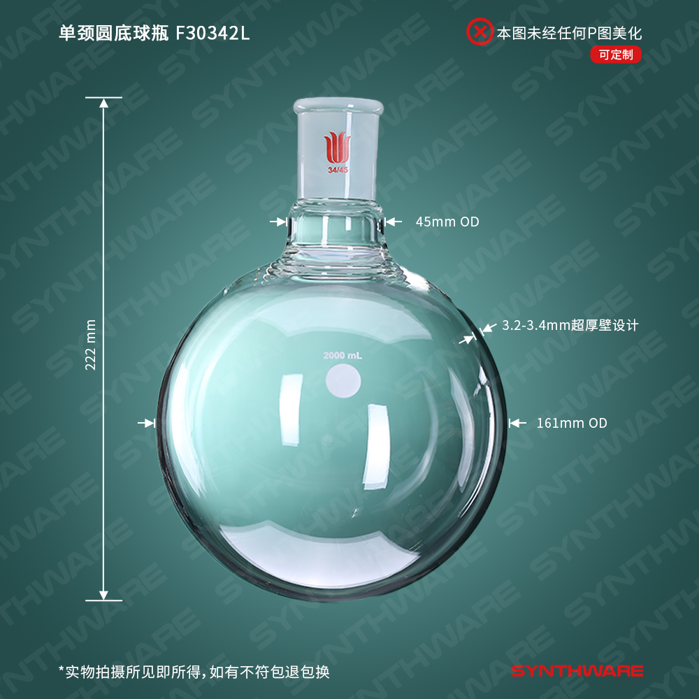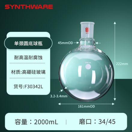 单颈圆底球瓶,厚壁高强度,磨口:34/45,2000ml F30342L