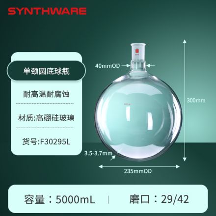 单颈圆底球瓶,厚壁高强度,磨口:29/42,5000ml F30295L