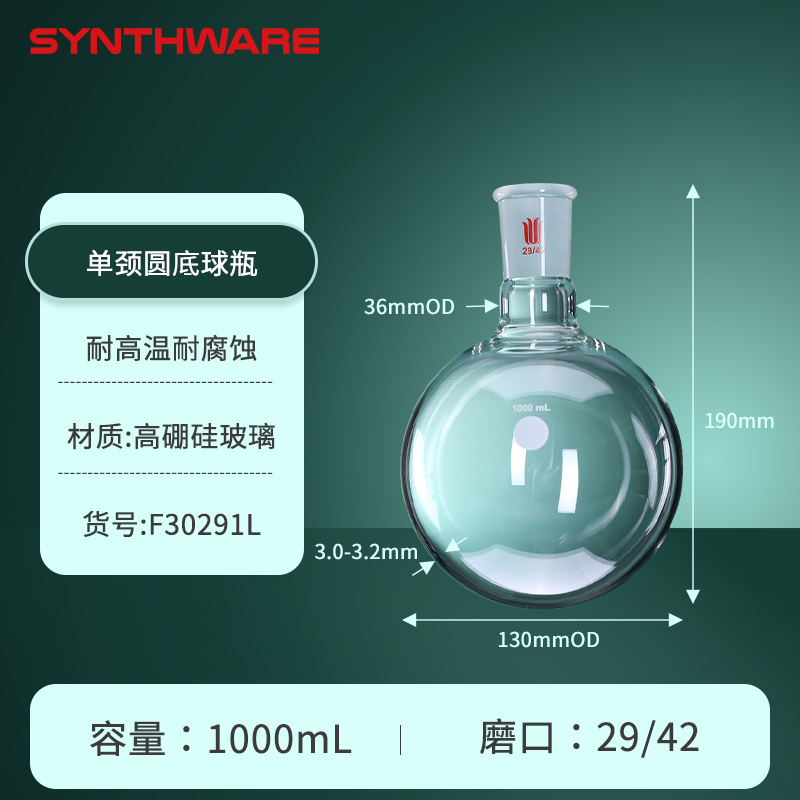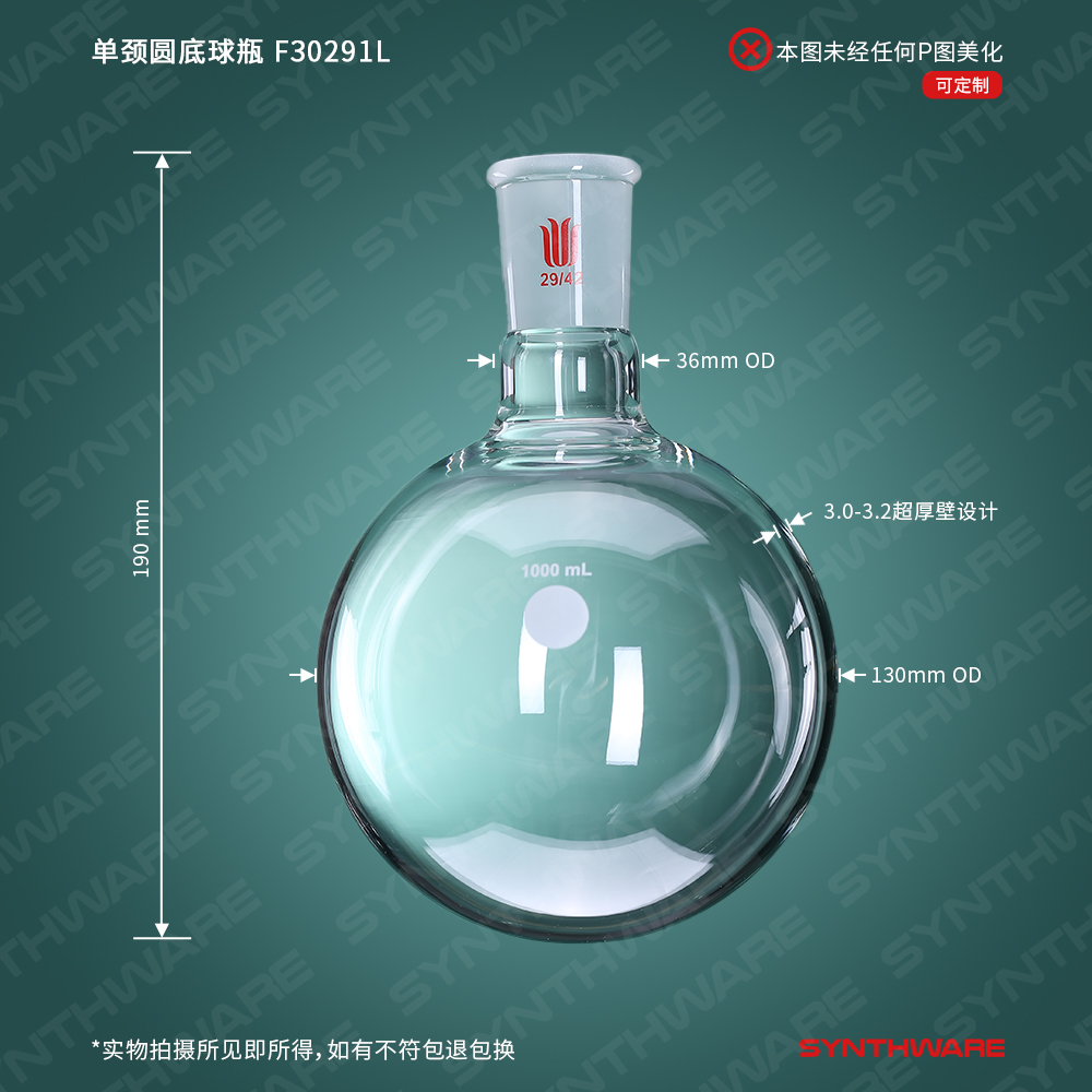 单颈圆底球瓶,厚壁高强度,磨口:29/42,1000ml F30291L