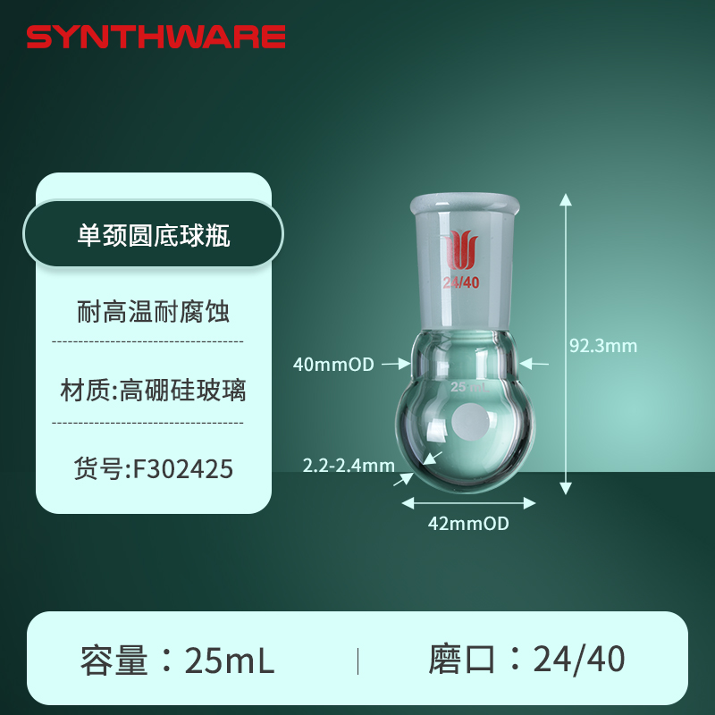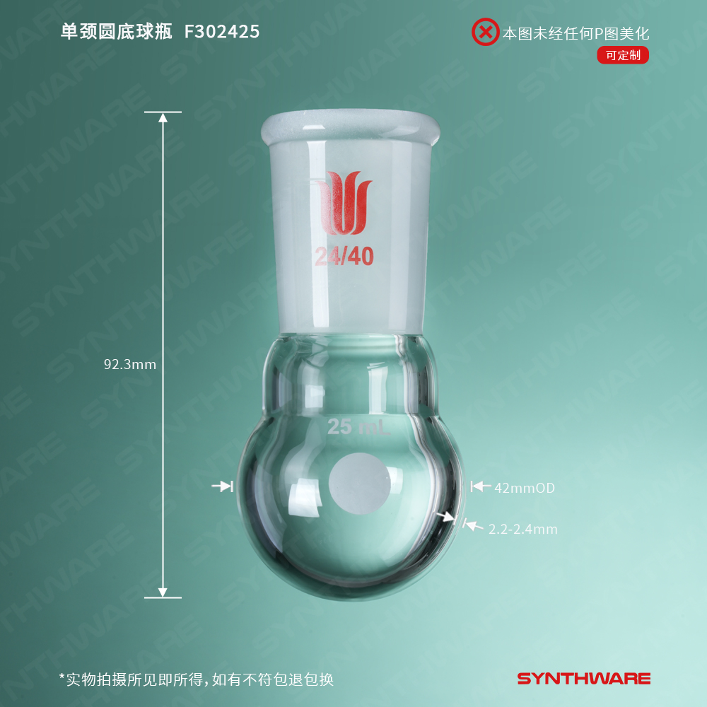 单颈圆底球瓶,厚壁高强度,磨口:24/40,25ml F302425