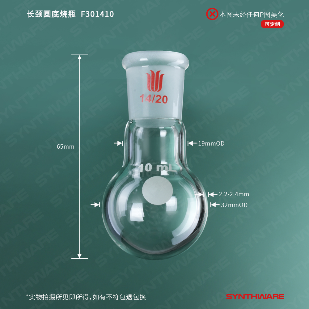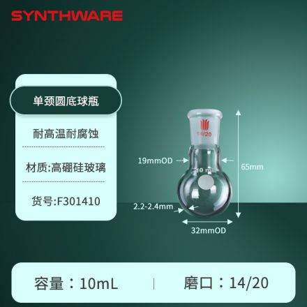 单颈圆底球瓶,厚壁高强度,磨口:14/20,10ml F301410