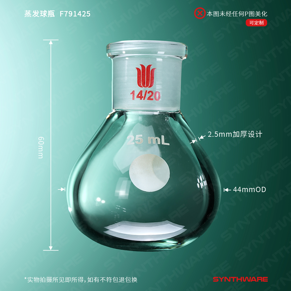 单颈圆底球瓶,厚壁高强度,磨口:14/20,25ml F301425