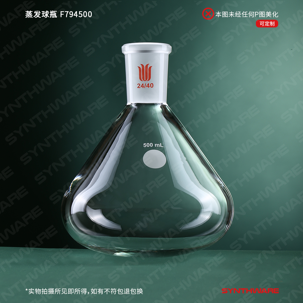 # 短粗型“不倒翁”设计,既具备三角瓶可直接放置桌上的优点,又可在减压条件下使用,如:可在旋转蒸发仪上作为蒸发瓶。同时,此设计易于用药勺/刮从瓶底取出固体样品。