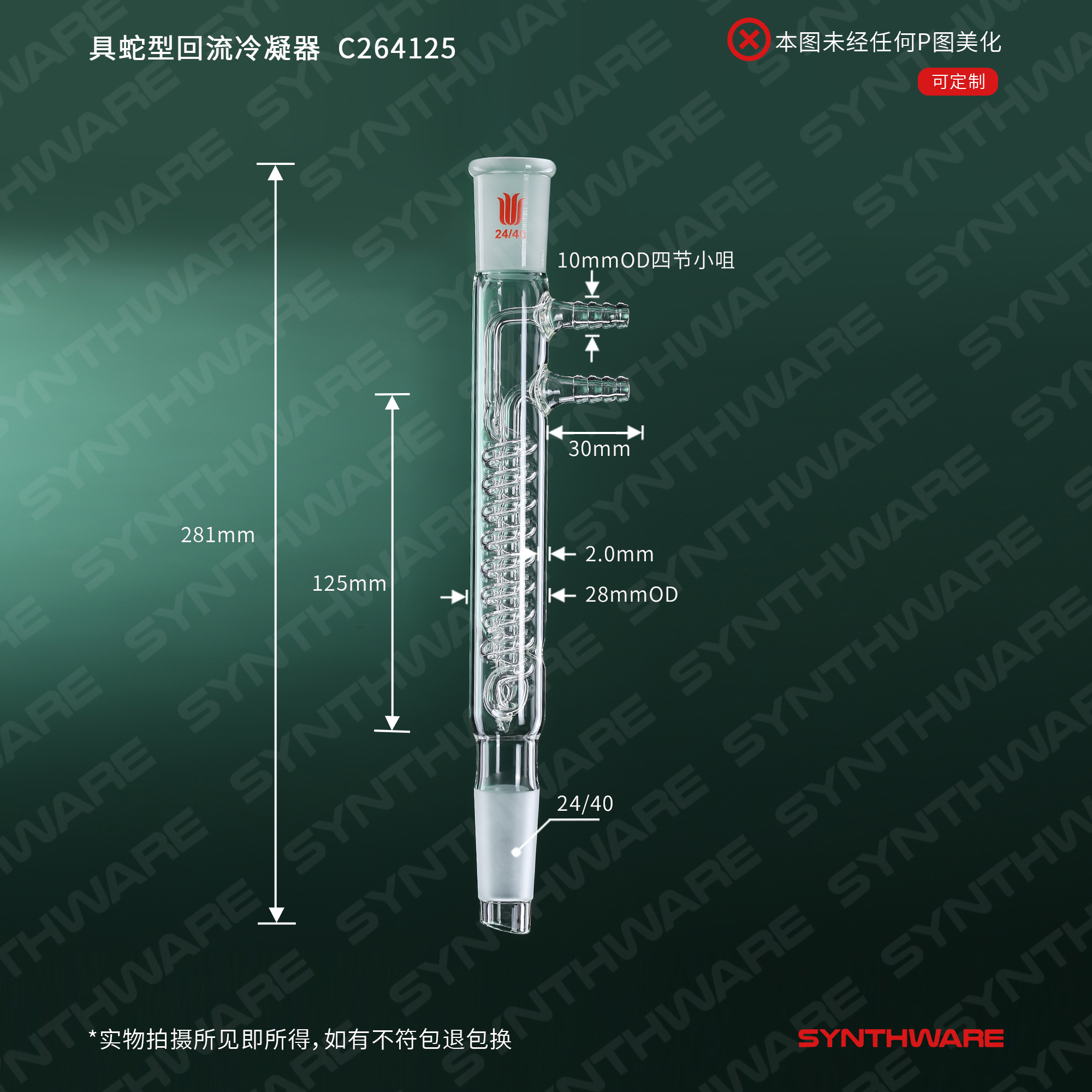 冷凝器 > 回流冷凝器 > 高效蛇型回流冷凝器 > SYNTHWARE > 蛇型回流冷凝器,高效,24/40,夹层长125mm,φ8mm小咀 C264125