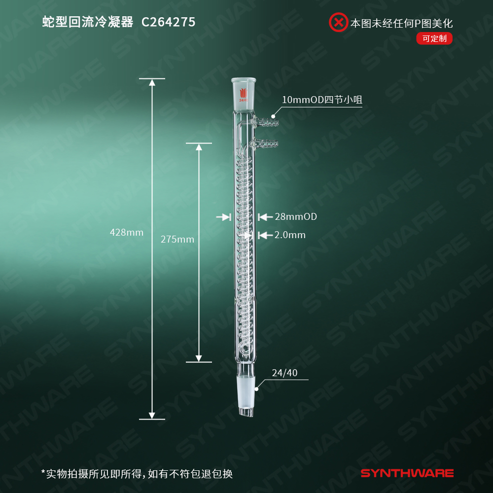 冷凝器 > 回流冷凝器 > 高效蛇型回流冷凝器 > SYNTHWARE > 蛇型回流冷凝器,高效,24/40,夹层长275mm,φ10mm小咀 C264275