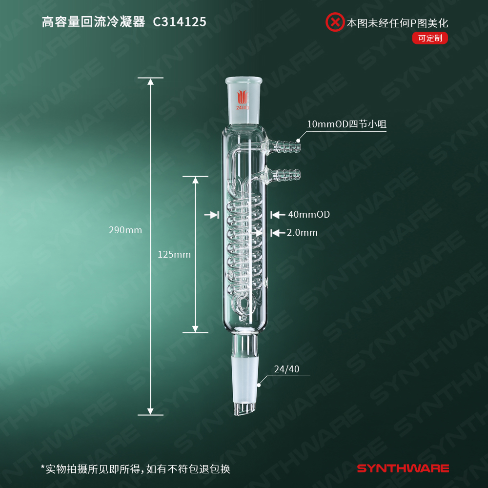 高容量回流冷凝器,24/40,蛇冷长度:125mm,φ10mm小咀 C314125