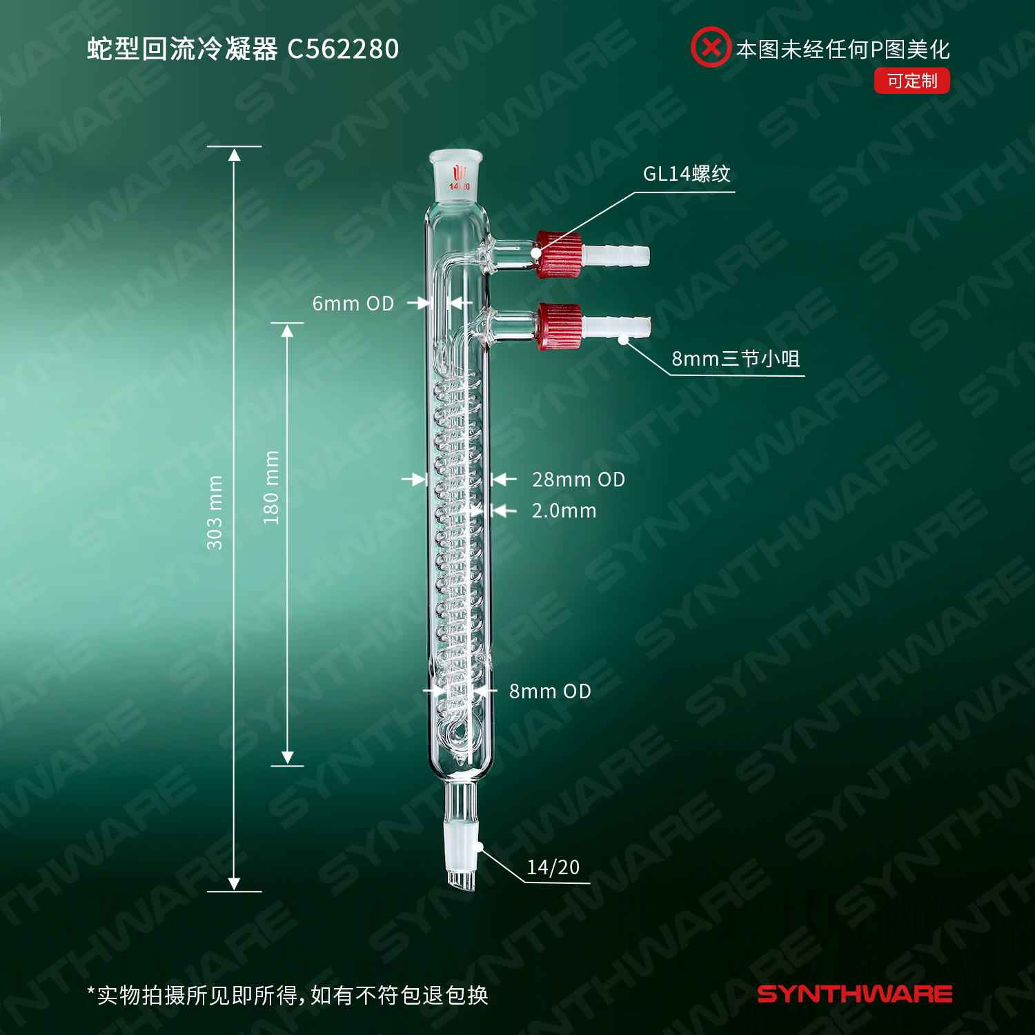 冷凝器 > 回流冷凝器 > 蛇型-具可拆式小咀回流冷凝器 > SYNTHWARE > 蛇型回流冷凝器,14/20,夹层长180mm,φ8mm可拆式小咀 C562280