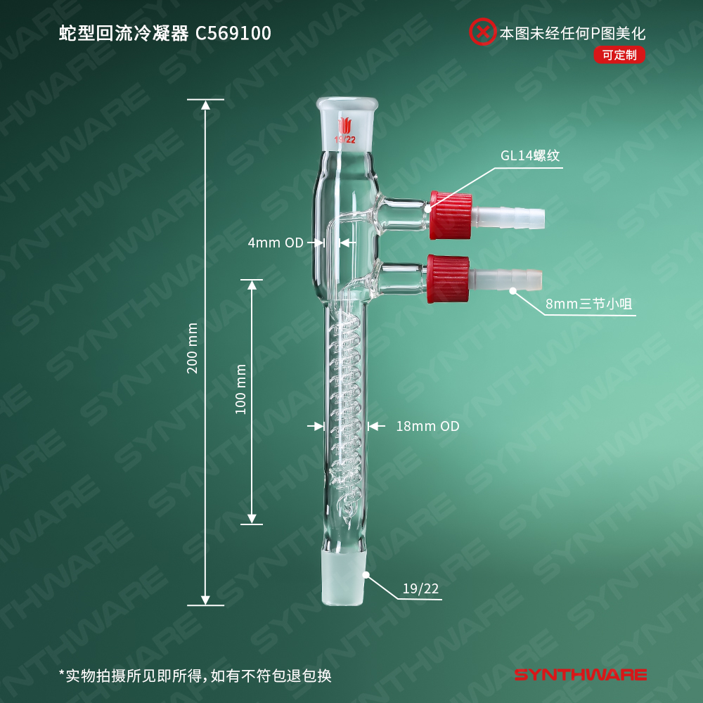 蛇型回流冷凝器,19/22,夹层长100mm,φ8mm可拆式小咀 C569100