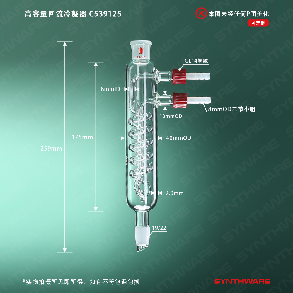 冷凝管直径增大为8mm,外管部分直径为40mm,从而提供最大的冷却面积