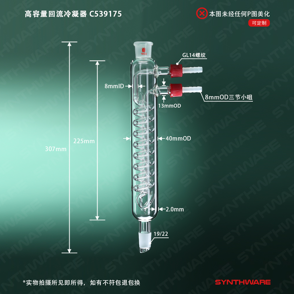 冷凝管直径增大为8mm,外管部分直径为40mm,从而提供最大的冷却面积