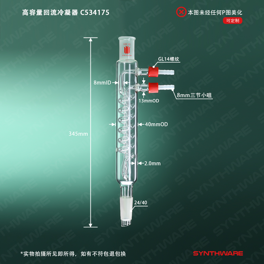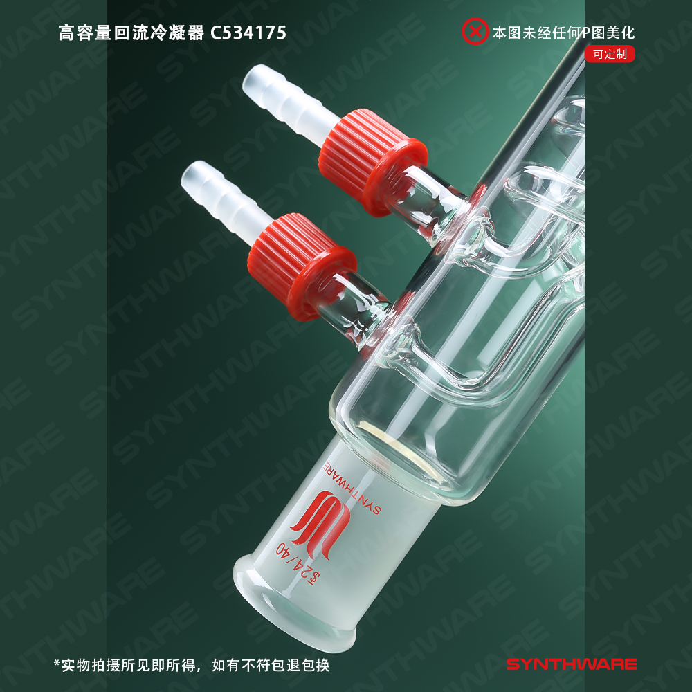 冷凝器 > 回流冷凝器 > 高容量-具可拆式小咀回流冷凝器 > SYNTHWARE > 高容量回流冷凝器,24/40,蛇冷长:175mm,φ8mm可拆式小咀 C534175