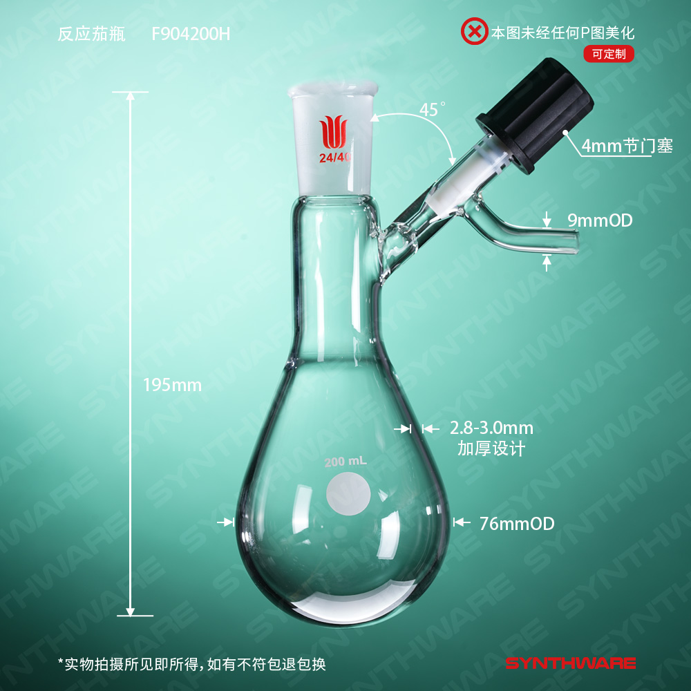 带高真空节门的溶剂反应瓶,可确保溶剂的密封性。高真空节门的特点:四氟全包裹的四氟节门,防化学腐蚀。