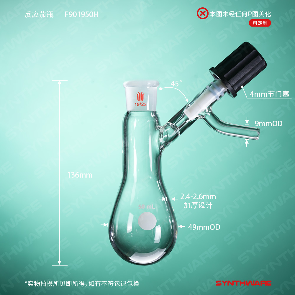 带高真空节门的溶剂反应瓶,可确保溶剂的密封性。高真空节门的特点:四氟全包裹的四氟节门,防化学腐蚀。