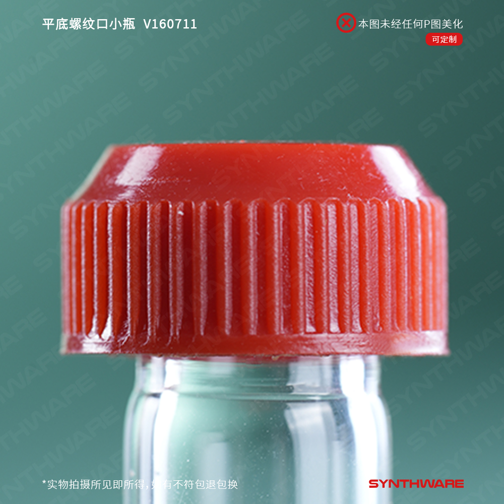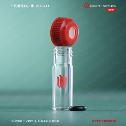 平底螺纹口小瓶,标配有无孔螺纹盖,具四氟垫片 V161003