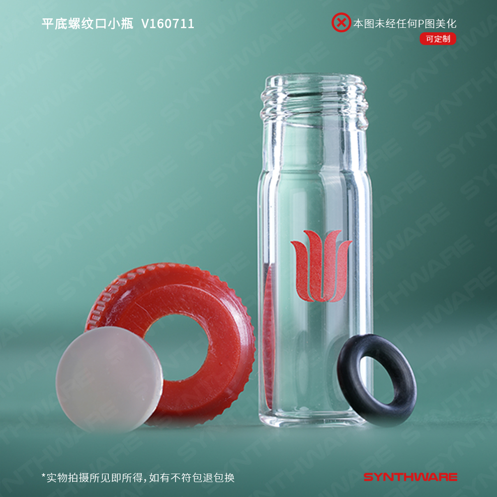 平底螺纹口小瓶,8ml标配有无孔螺纹盖,具四氟垫片 V161008