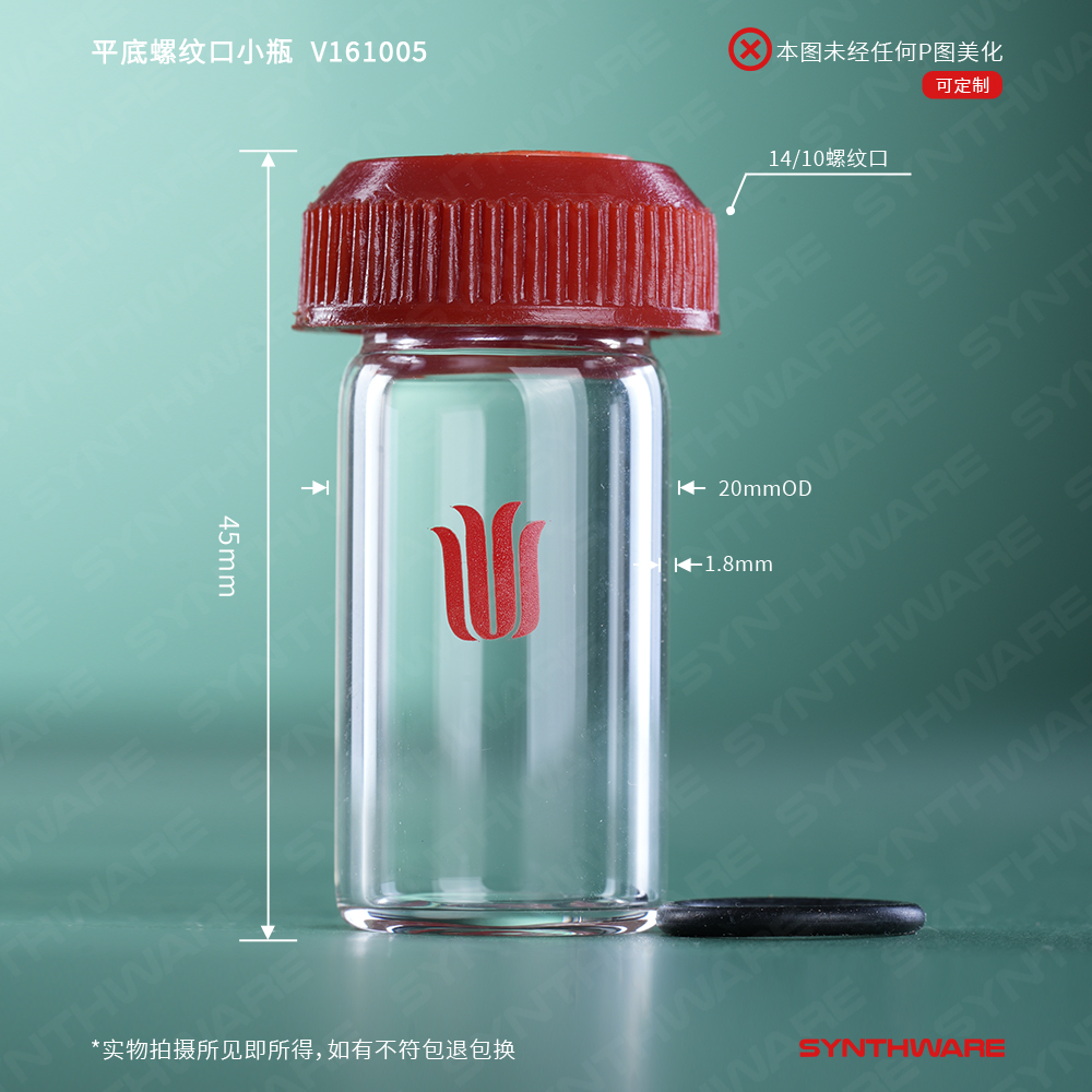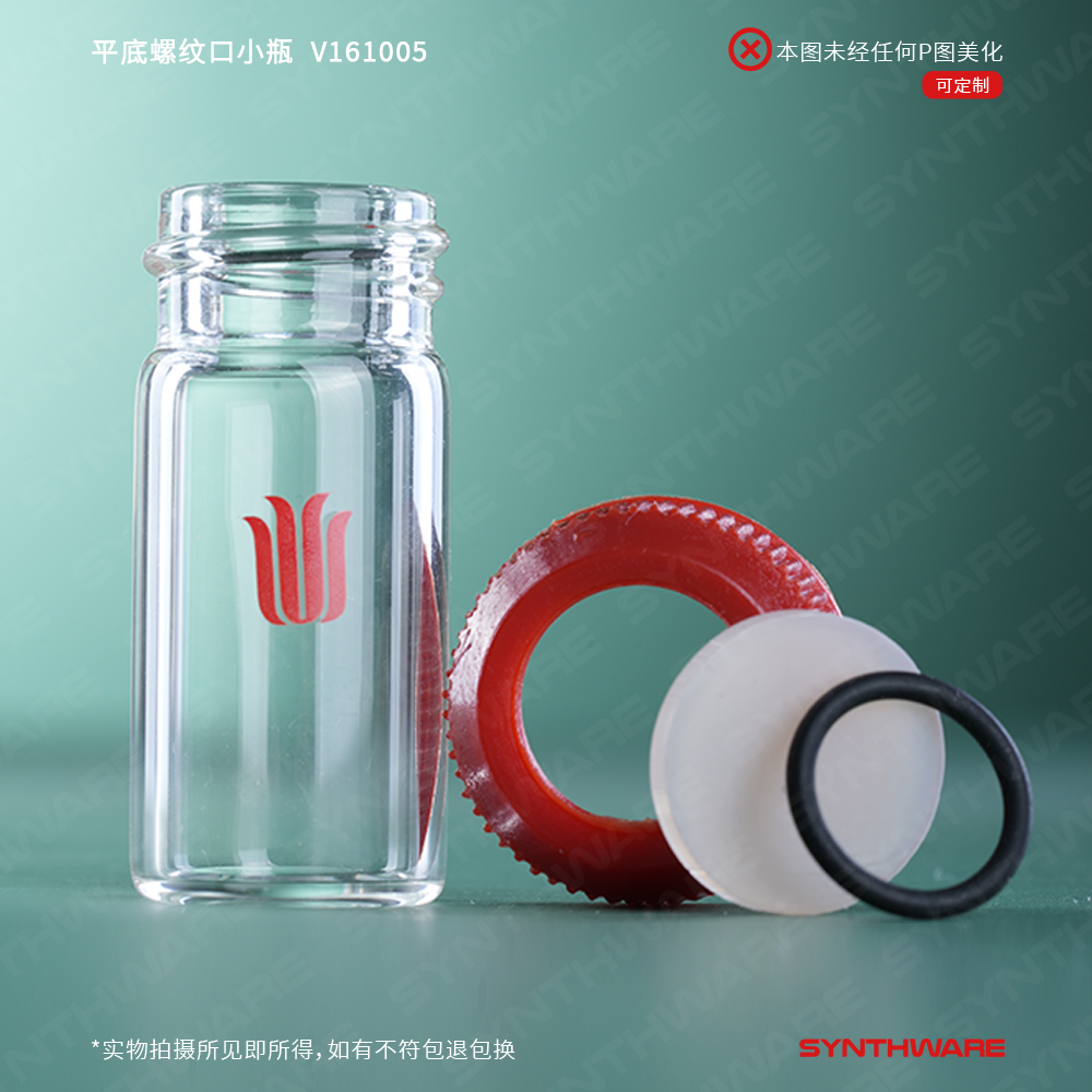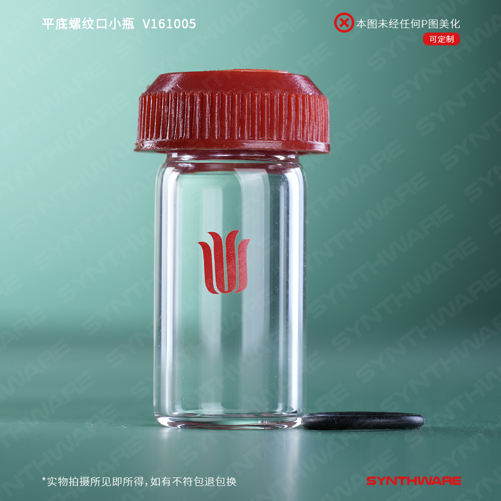 平底螺纹口小瓶,8ml标配有无孔螺纹盖,具四氟垫片 V161008