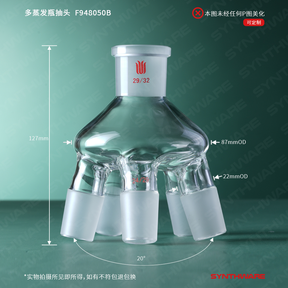 多蒸发瓶抽头,上磨口29/32,下磨口24/29,容量:50ml F948050B